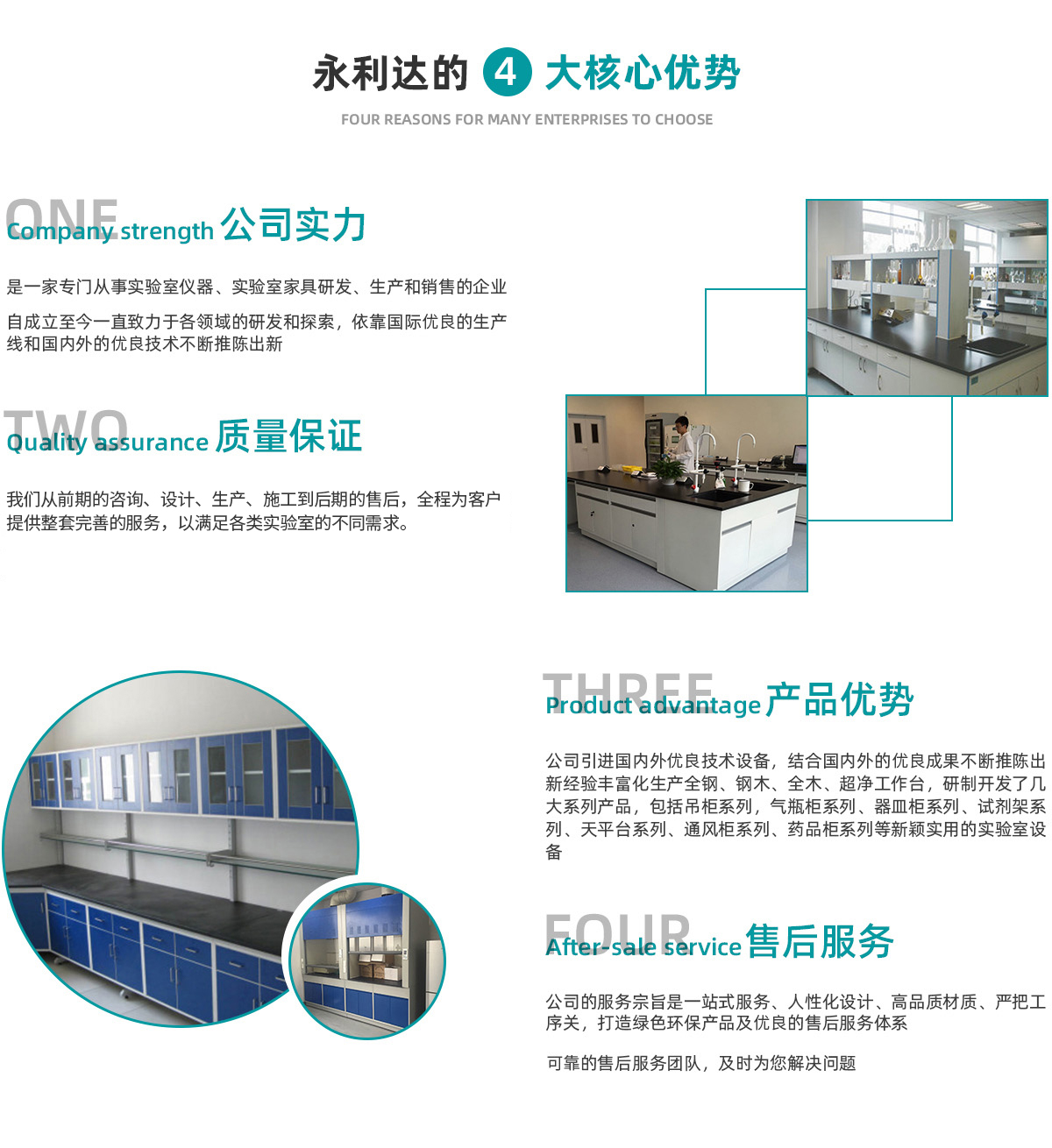 天津永利達(dá)實(shí)驗(yàn)室設(shè)備有限公司是一家從事實(shí)驗(yàn)室家具研發(fā)、生 產(chǎn)、銷售與服務(wù)于一體的企業(yè)。成立于2006年,坐落于天津市靜海高新產(chǎn)業(yè)園區(qū)。公司秉承“科技創(chuàng)新、質(zhì)量為本、服務(wù)至上”的理念,致力于為用戶提供實(shí)驗(yàn)室家具和整體解決方案。 公司的主要業(yè)務(wù)涵蓋了實(shí)驗(yàn)室家具、實(shí)驗(yàn)室通風(fēng)、凈化、集中供氣、純水及裝修等多個領(lǐng)域,憑借多年在實(shí)驗(yàn)室行業(yè)的積累,和不斷吸收國際上的技術(shù)與設(shè)計(jì)理念,我們從前期的咨詢、設(shè)計(jì)、生產(chǎn)、施工到后期的售后,全程為客戶提供整套完善的服務(wù),以滿足各類實(shí)驗(yàn)室的不同需求。 公司的服務(wù)宗旨是 提供人性化設(shè)計(jì)、材質(zhì)、嚴(yán)把工序關(guān),打造綠色環(huán)保產(chǎn)品及完善的售后服務(wù)體系。